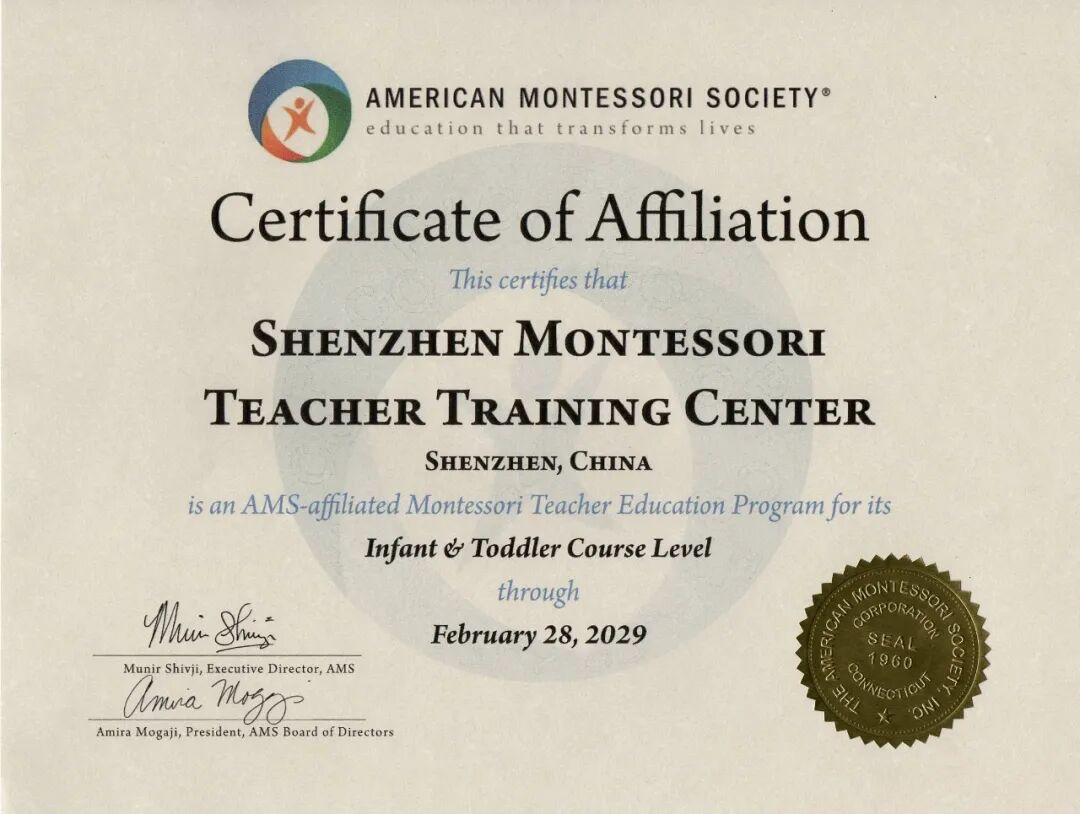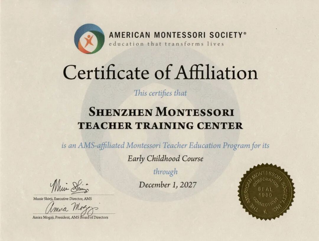2018年深圳国际蒙特梭利教育儿童中心成为美国蒙特梭利协会(AMS)会员学校